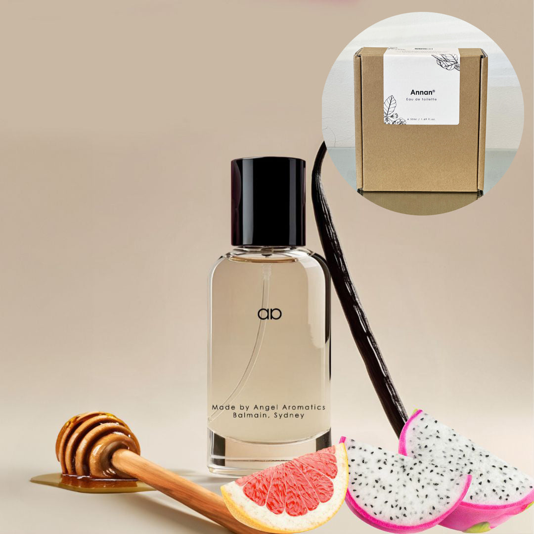 Annan perfume is our signature fragrance - The scent of warm vanilla and exotic fruits is comforting as well as lively, refreshing and energising, with a rich and creamy aroma that is both sweet and delicate. It is sweet and slightly floral scent, with notes of honey, and even a hint of spice. The exotic fruits create a fresh, bright, and invigorating fragrance, with a sweet and juicy aroma that is both fruity and slightly tropical. It is a great choice for a fragrance oil that is both uplifting and fun.