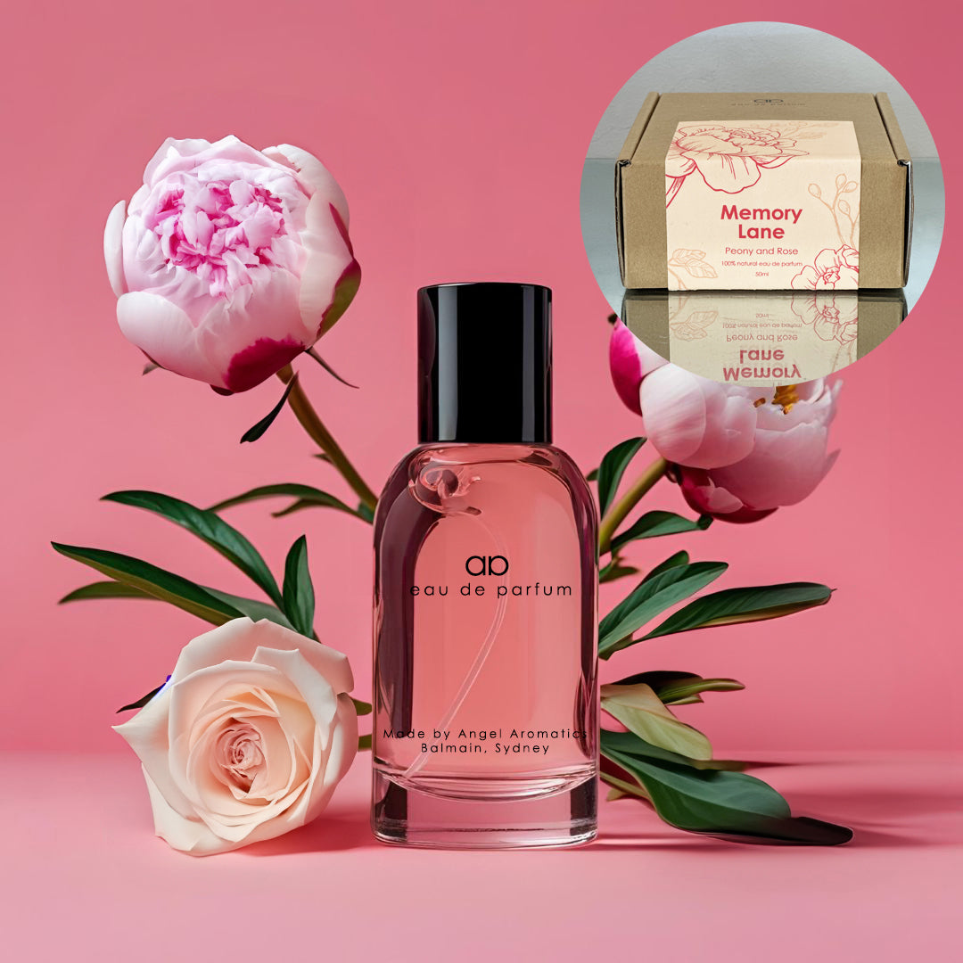 Memory Lane - Peony and Rose Natural Perfume: Secret laneways, stolen kisses, blossoming roses. We evoke the memory of romance through a delicate mix of peony accord and rose fragrance tempered with notes of sweet balsamic and vetiver. It’s an unforgettable fragrance that will become a true favourite.